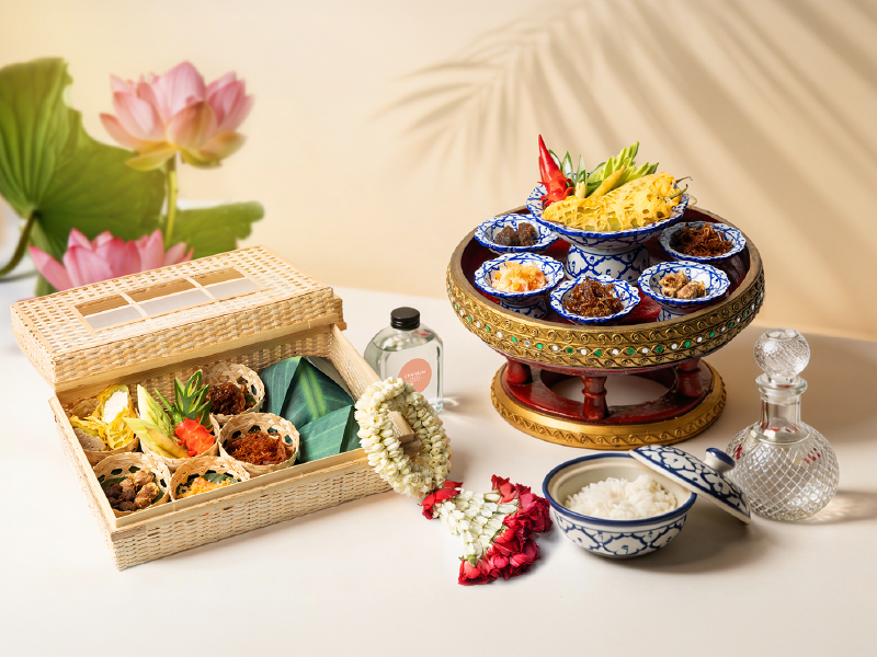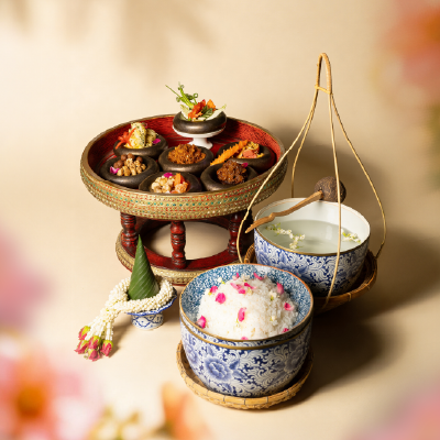 เมนูข้าวแช่ตำรับไทยแท้ถูกรังสรรค์อย่างพิถีพิถันในทุกขั้นตอน เสิร์ฟพร้อมเครื่องเคียงรสเลิศครบครัน ไม่ว่าจะเป็นลูกกะปิ พริกหยวกสอดไส้ หมูฝอย ไข่แดงเค็ม ไชโป๊วหวาน แตงโมปลาแห้ง และผักแนมสดใหม่ ทุกองค์ประกอบสะท้อนความละเมียดละไมของอาหารไทยชั้นสูงได้อย่างสมบูรณ์แบบ โดยมีให้เลือกทั้งเซ็ตสำหรับรับประทานที่ร้านในราคา 999 บาท และเซ็ตสั่งกลับบ้านในราคา 1,199 บาท