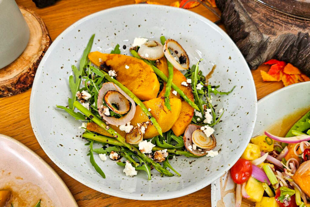 เชฟรังสรรค์เมนูสุดครีเอทจากฟักทองสดใหม่และผักออร์แกนิกจากฟาร์มของโรงแรม ผสานวัตถุดิบคุณภาพระดับพรีเมียม ให้รสชาติกลมกล่อมในสไตล์ที่ทั้งอร่อยและมีสไตล์