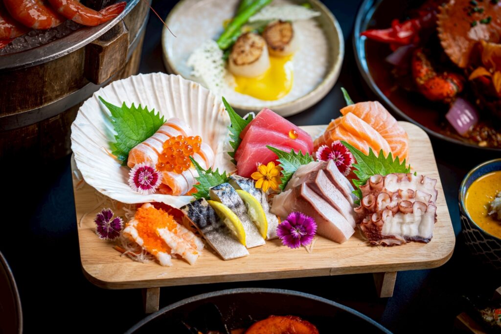 เริ่มต้นมื้อค่ำด้วยซีฟู้ดออนไอซ์สุดอลังการที่ยกขบวนความสดมาเต็มอ่าง ทั้งปูอลาสก้าคิงแครบ กุ้งแม่น้ำ ล็อบสเตอร์ กั้ง และหอยนางรมหลากสายพันธุ์ ไม่ว่าจะเป็น Fine de Claire, Normandy หรือหอยนางรมเกาหลี เสิร์ฟพร้อมมุมอาหารญี่ปุ่นสุดพรีเมียมที่รวมทั้งซูชิ ซาชิมิ แซลมอน ทูน่า ฮามาจิ และวากิว นิกิริ ให้เลือกอร่อยกันแบบไม่อั้น