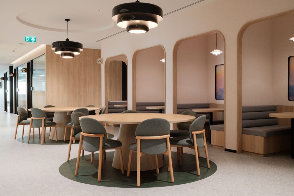 สิ่งที่ทำให้สำนักงานแห่งนี้แตกต่างคือการออกแบบที่ตอบโจทย์การทำงานของบริษัทเทคโนโลยีระดับโลกอย่าง Agoda ไม่ว่าจะเป็น NOC (Network Operations Center) ที่ทำหน้าที่เป็นหัวใจในการติดตามและดูแลระบบเครือข่ายแบบเรียลไทม์, War Room ที่ตั้งอยู่ใกล้กันเพื่อรับมือกับสถานการณ์เร่งด่วน, หรือแม้แต่สตูดิโอและห้องบันทึกเสียงที่พร้อมรองรับการผลิตคอนเทนต์ในยุคดิจิทัล ทุกพื้นที่ถูกออกแบบมาอย่างพิถีพิถันเพื่อให้การทำงานด้านเทคโนโลยีและนวัตกรรมเกิดขึ้นได้อย่างเต็มประสิทธิภาพ