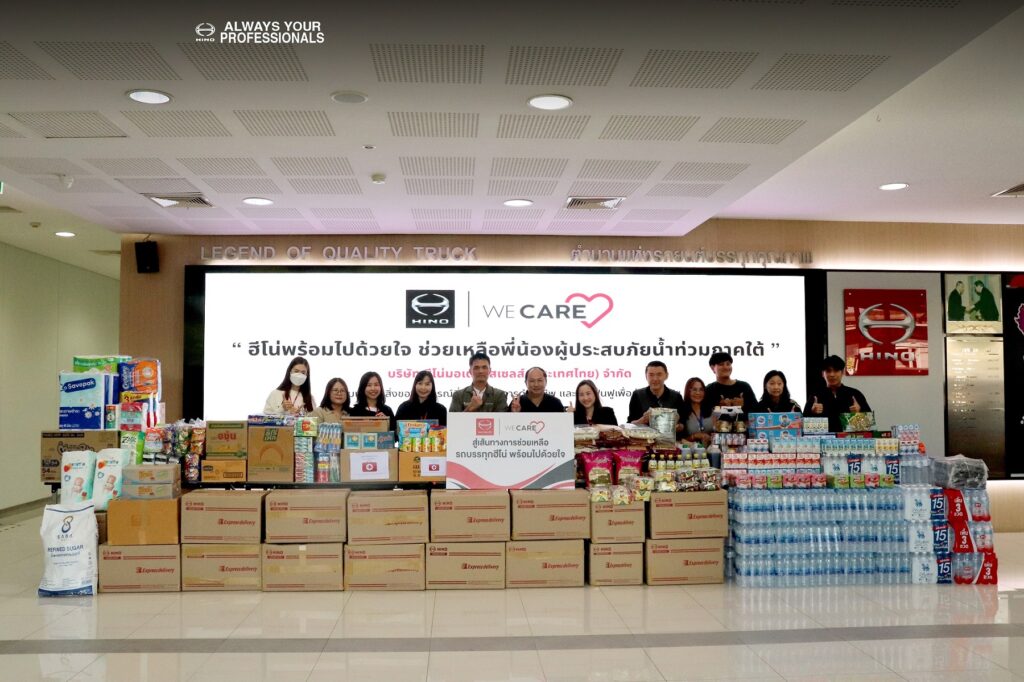 Hino Motors Sales (Thailand) Ltd. is committed to supporting communities affected by the recent flooding in several southern provinces through the initiative “HINO WE CARE – Hino Stands with You in the Southern Flood Crisis.” Led by Mr. Day Yingchol and Mr. Yasumitsu Tanaka, Executive Vice President, together with management and employee volunteers, the company delivered essential relief supplies—including drinking water, dried food, daily necessities, and medical items—to help ease the hardship and support initial recovery efforts for affected residents.
