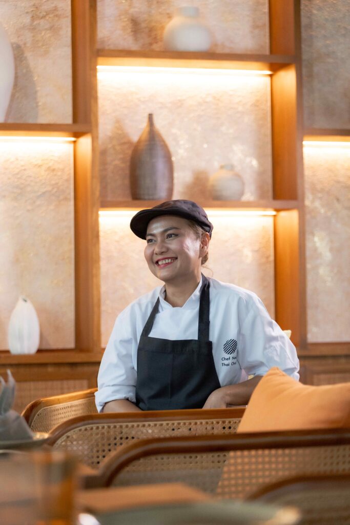 One of the most poetic dishes on the menu is the Khao Soi Chicken Raviolo, where handcrafted Italian-style raviolo embraces the soul of Northern Thai coconut curry. Accented with roasted red chilli and home-pickled cabbage, the dish reflects Chef Nok’s vision of East meeting West in a single, elegant plate.