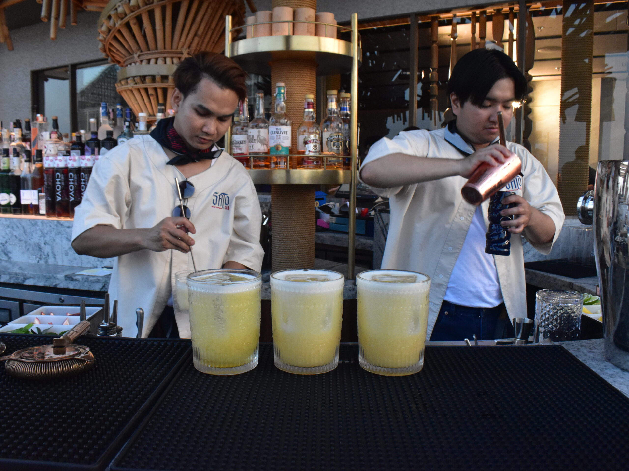 เมนูเหมือนบทสนทนาระหว่างสองวัฒนธรรมที่แตกต่าง แต่เข้ากันอย่างน่าประหลาด นอกจากรสชาติของอาหารและเครื่องดื่มแล้ว สเปซของร้านยังสะท้อนเสน่ห์ท้องถิ่นผ่านงานคราฟต์ เช่นไม้ไผ่สานและผ้าขาวม้า ที่ถูกตีความใหม่ในดีไซน์ร่วมสมัย กลายเป็น aesthetic ที่ทั้ง local และ urban ในที่เดียวกัน ซึ่งเหมาะแก่การพักผ่อนชิล ๆ ใจกลางเมือง ไม่ว่าจะมาเพื่อดูพระอาทิตย์ลับขอบฟ้า เริ่มต้นค่ำคืนกับเพื่อน หรือปล่อยใจไปกับวิวเมือง SATO San คือจุดหมายที่ตอบโจทย์ทุกไลฟ์สไตล์มากที่สุดในเวลานี้