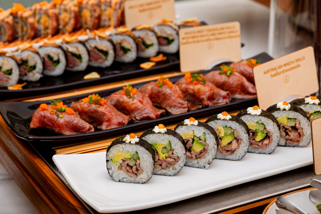 ไฮไลต์เมนู ได้แก่ เบอร์เกอร์วากิว, ราวิโอลี่หางวัวซอสทรัฟเฟิล, สเต็กเนื้อวากิวกับซอสเนยสมุนไพร, ก๋วยเตี๋ยวเรือวากิว, กะเพราวากิว, ลิ้นวัวย่าง, วากิวยากินิกุ และอีกมากมาย พร้อมโคลด์คัท ชีส ขนมไทย ขนมอบ เค้ก ไอศกรีม และผลไม้ตามฤดูกาล ราคาเพียง 2,490 บาท++ ต่อท่าน รวมเครื่องดื่มเพิ่มอรรถรส ซอฟดริ้งค์ไม่อั้น พร้อมดนตรีสด ตั้งแต่เวลา 18.00 น. – 22.30 น. (ปิดไลน์อาหาร 22.00 น.)