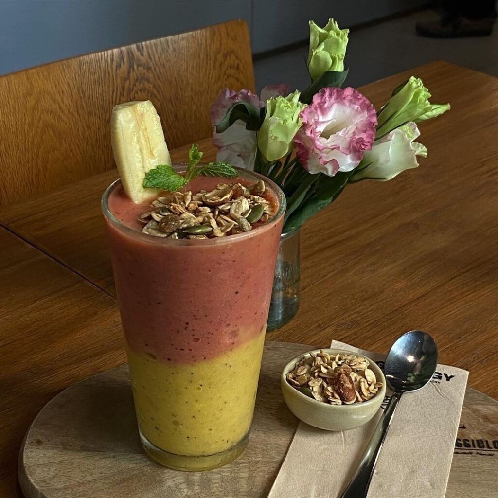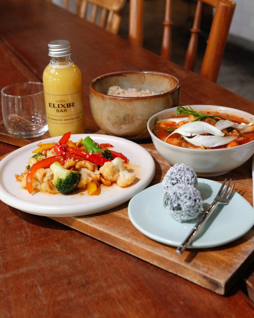คาเฟ่สุขภาพที่เน้นเมนู น้ำผลไม้สกัดเย็นและอาหาร plant-based ใช้วัตถุดิบออร์แกนิก ปลอดสารเคมี และบรรจุภัณฑ์รักษ์โลก จุดเด่นคือโปรแกรมขวดรีฟิลที่ช่วยลดขยะพลาสติก พร้อมเมนูยอดนิยมอย่าง Celery Melody, Gravity Green และ Vegan Plant Milk Tea with Organic Grass Jelly