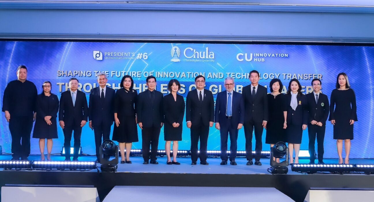 จุฬาลงกรณ์มหาวิทยาลัย ร่วมกับศูนย์กลางนวัตกรรมแห่งจุฬาลงกรณ์มหาวิทยาลัย (CU Innovation Hub) เดินหน้ายกระดับศักยภาพนวัตกรรมและทรัพย์สินทางปัญญาของประเทศ ผ่านการจัดงานเสวนา President’s Distinguished Speaker ครั้งที่ 6 “ก้าวสู่อนาคตของนวัตกรรมและการถ่ายทอดเทคโนโลยีผ่านมุมมองของผู้นำระดับโลก” โดยได้รับเกียรติจาก ศาสตราจารย์ ดร.วิเลิศ ภูริวัชร อธิการบดีจุฬาฯ กล่าวเปิดงาน จากนั้นเป็นการปาฐกถาจากผู้นำระดับโลกด้านทรัพย์สินทางปัญญา นวัตกรรมและการถ่ายทอดเทคโนโลยี คุณ Marco M. Alemán ผู้ช่วยอธิบดีองค์การทรัพย์สินทางปัญญาโลก (WIPO) และคุณ Katharine Ku อดีตผู้อำนวยการฝ่ายบริหารจาก Office of Technology Licensing จาก Stanford University มีคุณอรมน ทรัพย์ทวีธรรม อธิบดีกรมทรัพย์สินทางปัญญา พร้อมด้วยผู้บริหารมหาวิทยาลัย ผู้ทรงคุณวุฒิจากภาครัฐ และผู้บริหารระดับสูงจากภาคเอกชน มาเข้าร่วมเพื่อร่วมยกระดับผลงานวิจัยและทรัพย์สินทางปัญญาไทยสู่ตลาดโลกอย่างคับคั่ง