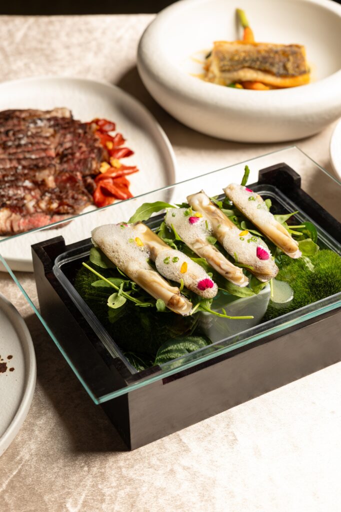 - Slow-Cooked Razor Clams with Lemon Air and Sofrito Sauce – หอยมีดปรุงช้ากับซอสโซฟริโตและโฟมเลมอน
