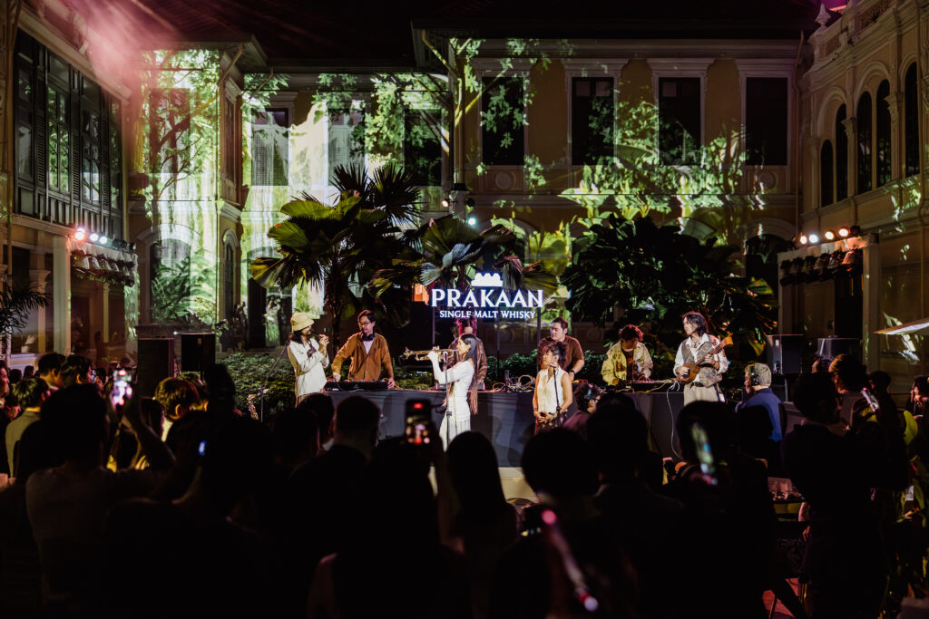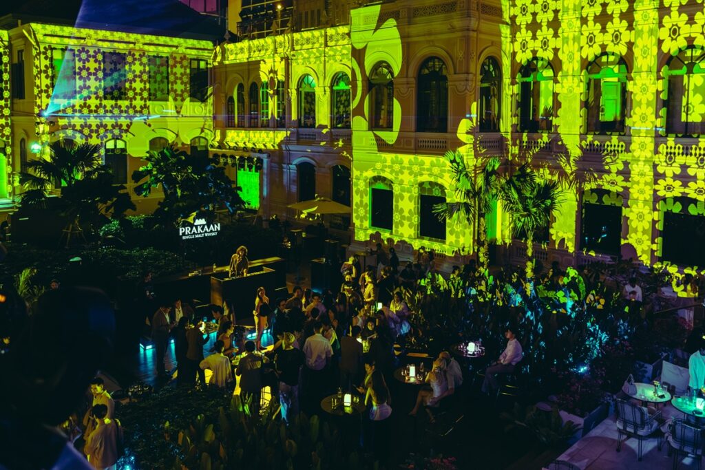 บรรยากาศในงานถูกออกแบบให้เป็นประสบการณ์ Multi-Sensory ที่รวมรสชาติ เสียง ภาพ และสถาปัตยกรรมเข้าด้วยกัน พื้นที่ประวัติศาสตร์อย่าง The House on Sathorn ถูกเปลี่ยนเป็นเวทีเล่าเรื่อง ผ่าน Immersive Mapping Experience ที่ฉายภาพต้นกำเนิดของน้ำจากผืนป่าตะวันตก มรดกโลกทางธรรมชาติของยูเนสโก สู่ความภาคภูมิใจในเมืองกำแพงเพชร อันเป็นที่ตั้งของโรงกลั่น เส้นทางที่เชื่อมโยง Provenance, Pride และ Passion เข้าด้วยกัน